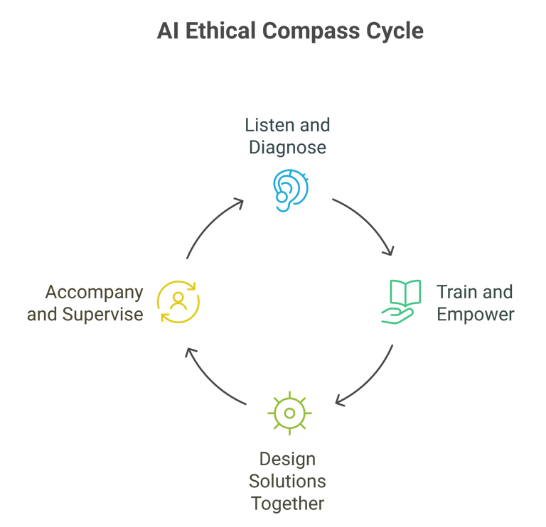 -Monitor and support progress so that organizations not only adopt AI tools but do so in an ethical, sustainable, and locally adapted way.